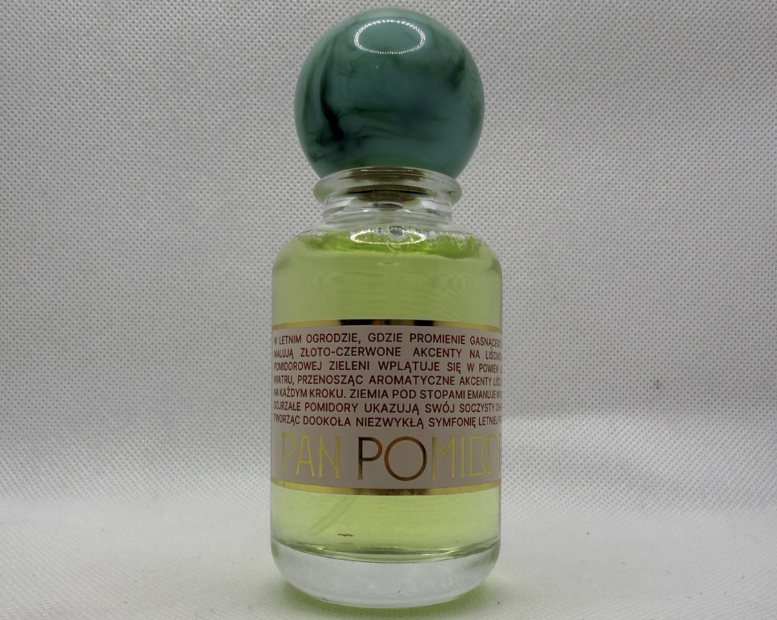 Zapach łodygi i liści pomidorów. Bardzo zielony, radosny zapach, który przypada do gustu zarówno kobietom jak i mężczyznom. Hit targów Wzory 2023 w Warszawie.